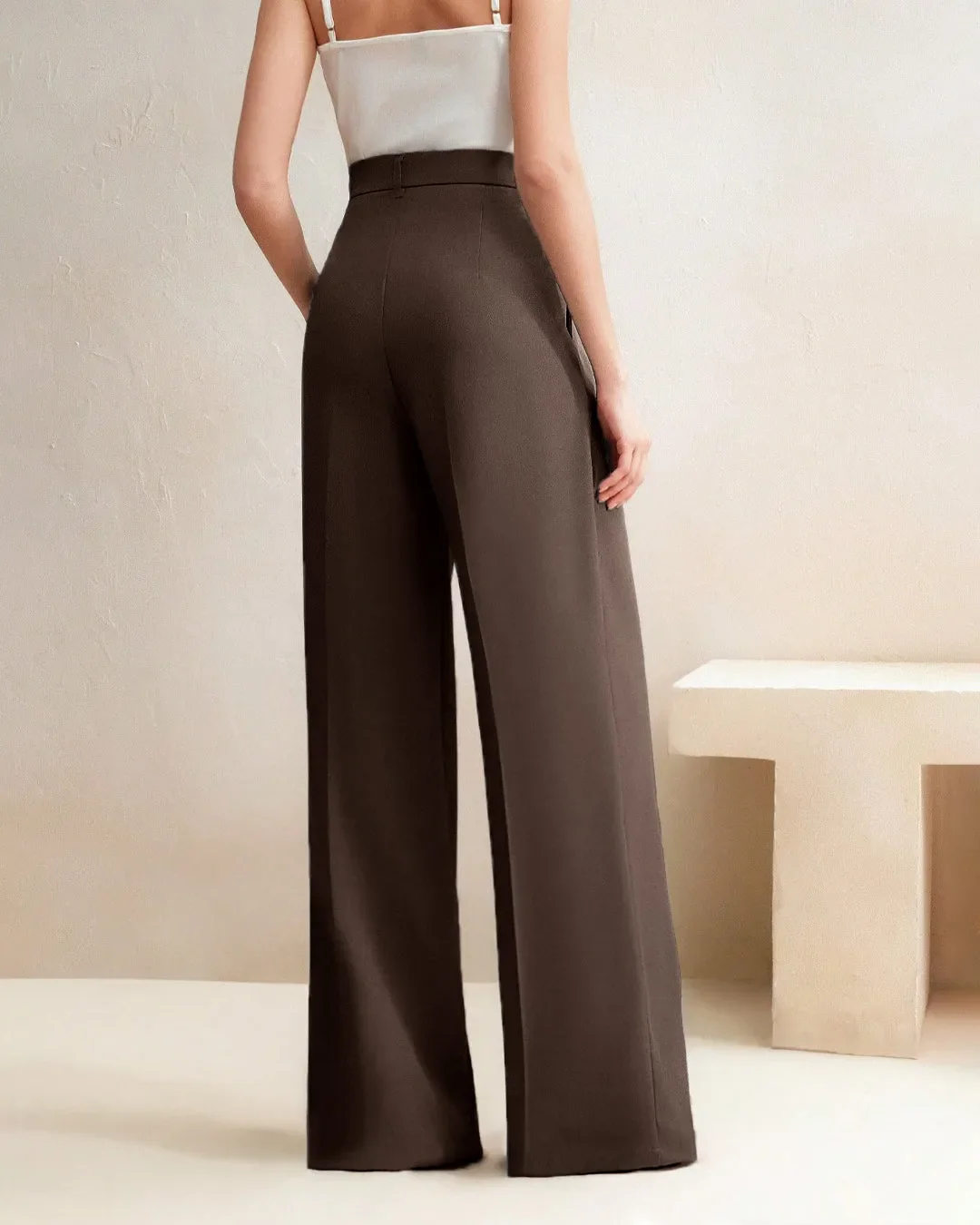 These tailored trousers are all about sleek polish with everyday comfort. The high-waist design enhances your silhouette, while the wide-leg cut brings flow and ease to your movement. Perfect for everything from office hours to dinner plans, these tailored trousers strike the right balance between chic and versatile.