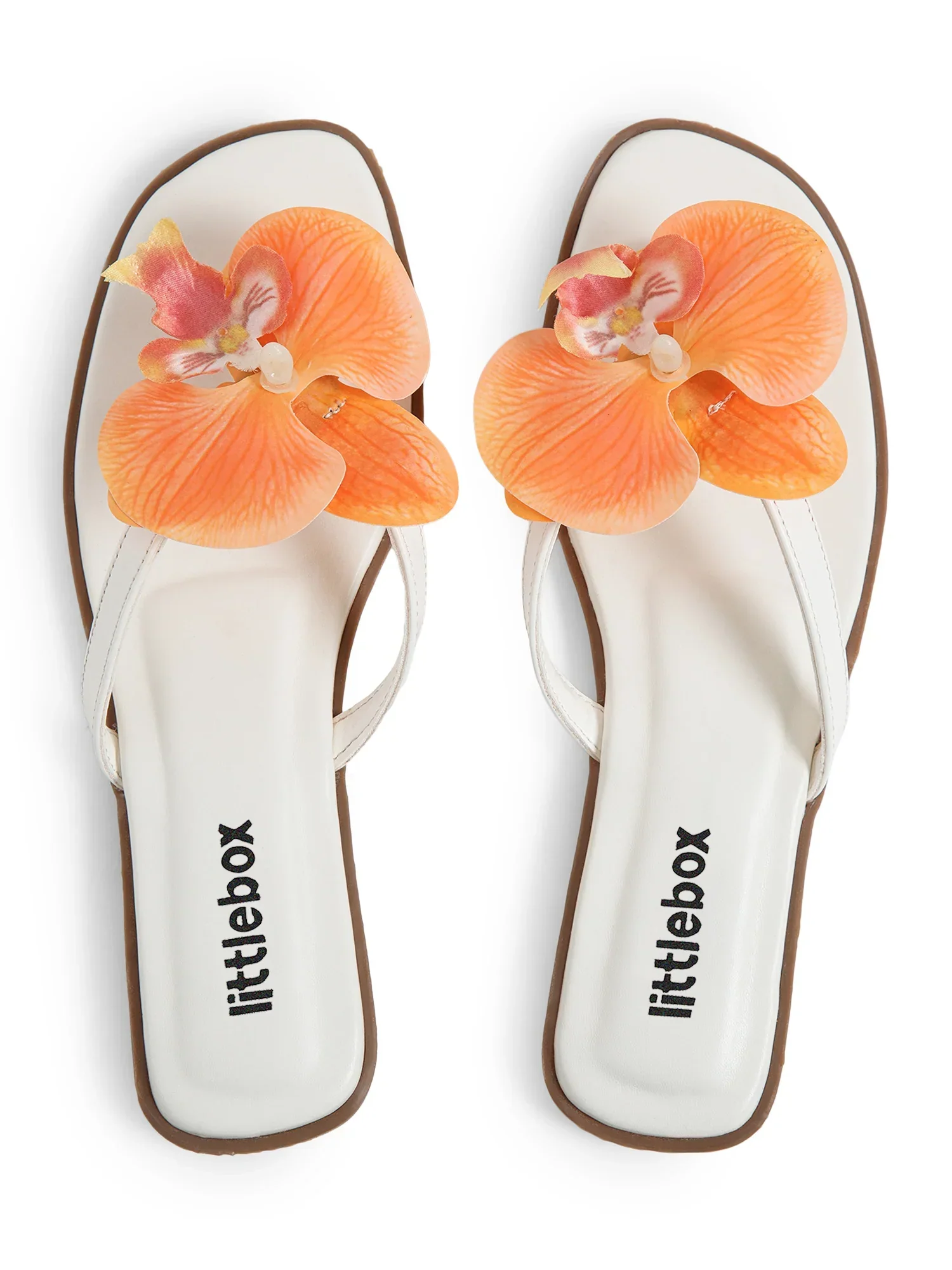 Orange Butterfly Orchid Decor Beach Flat brings a bright summer feel with its bold floral detail and clean white base. The soft straps and cushioned footbed make these womens flats feel easy and light, perfect for sunny days and relaxed plans. The orange orchid adds a fun standout moment without taking away from the minimal look, keeping the design fresh and wearable for everyday outings. These womens flats give you a mix of comfort and a cute pop of color.