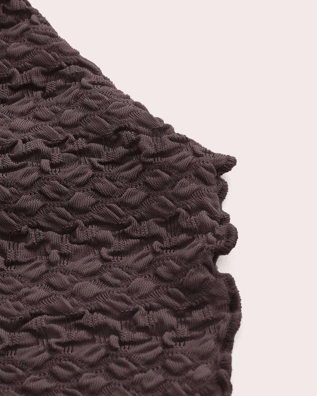 This brown tube top brings a soft, textured vibe with its strapless design and gathered front detail. Designed to sit comfortably across the chest, it highlights the shoulders while creating a flattering shape. The crinkled fabric adds depth and gives the top a relaxed yet stylish feel. This brown tube top feels trendy, easy to wear, and perfect for warm-day styling.