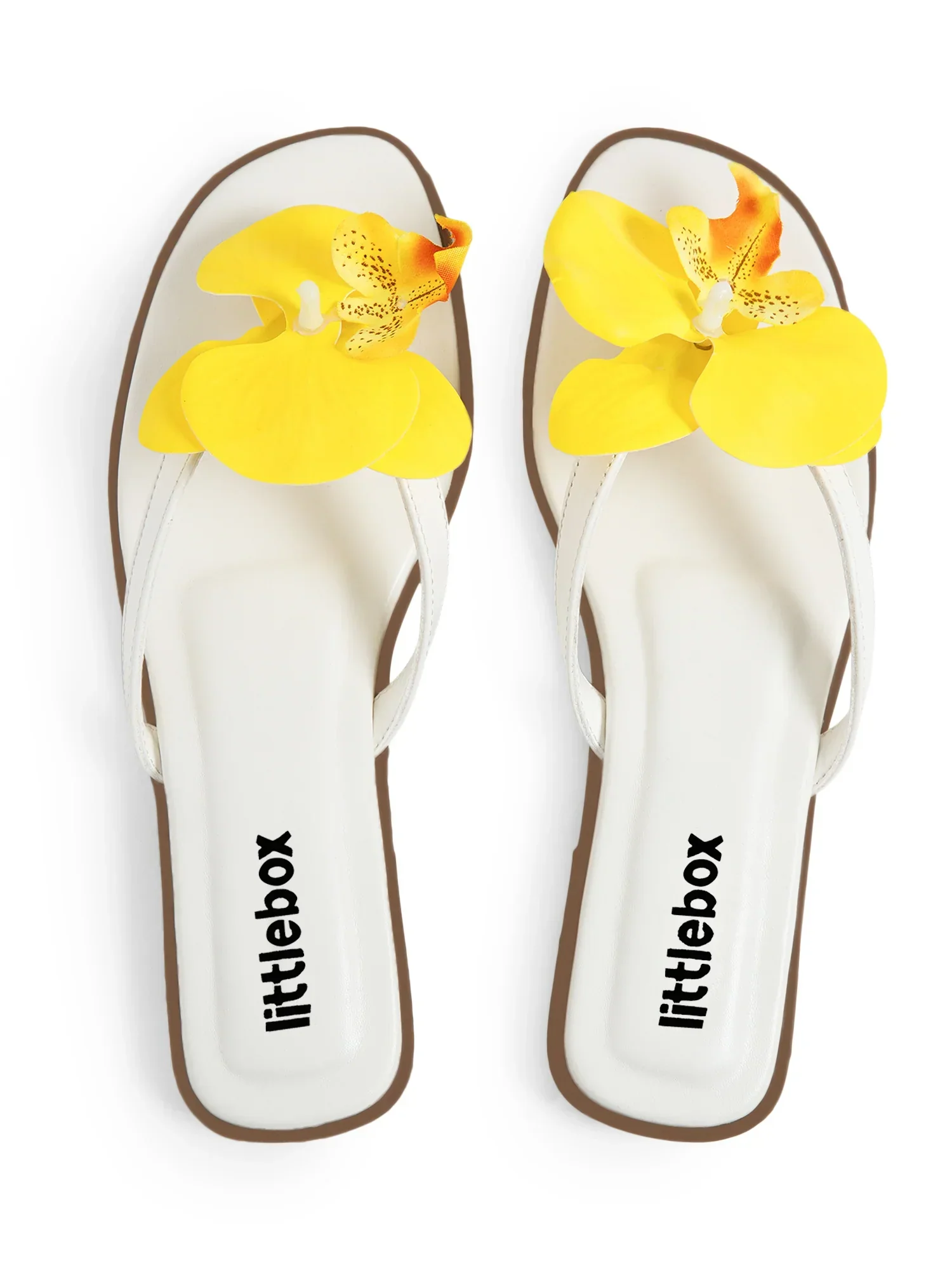 Yellow Butterfly Orchid Decor Beach Flat brings a soft tropical vibe with its bright floral accent and clean minimal base. The bold yellow flower adds a fun pop of color while keeping the look breezy and effortless, making these womens flats feel perfect for warm days. The cushioned footbed gives a relaxed feel, and the lightweight sole keeps every step easy and comfortable. These womens flats are ideal for anyone who wants something playful yet simple for everyday wear.